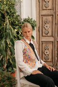 Un chaleco que elevará al instante cualquier look. Lúcelo con pantalones palazzo y jersey de cuello cisne, o con blusas especiales y unos pantalones negros. Incluso con vaqueros, dará el toque especial a cualquier estilismo.