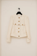 Chaqueta de corte bomber con hombros marcados y silueta amplia. Botones dorados de estilo retro. Talla normal.