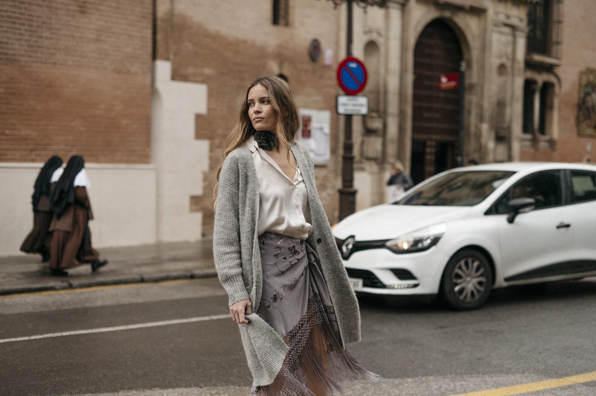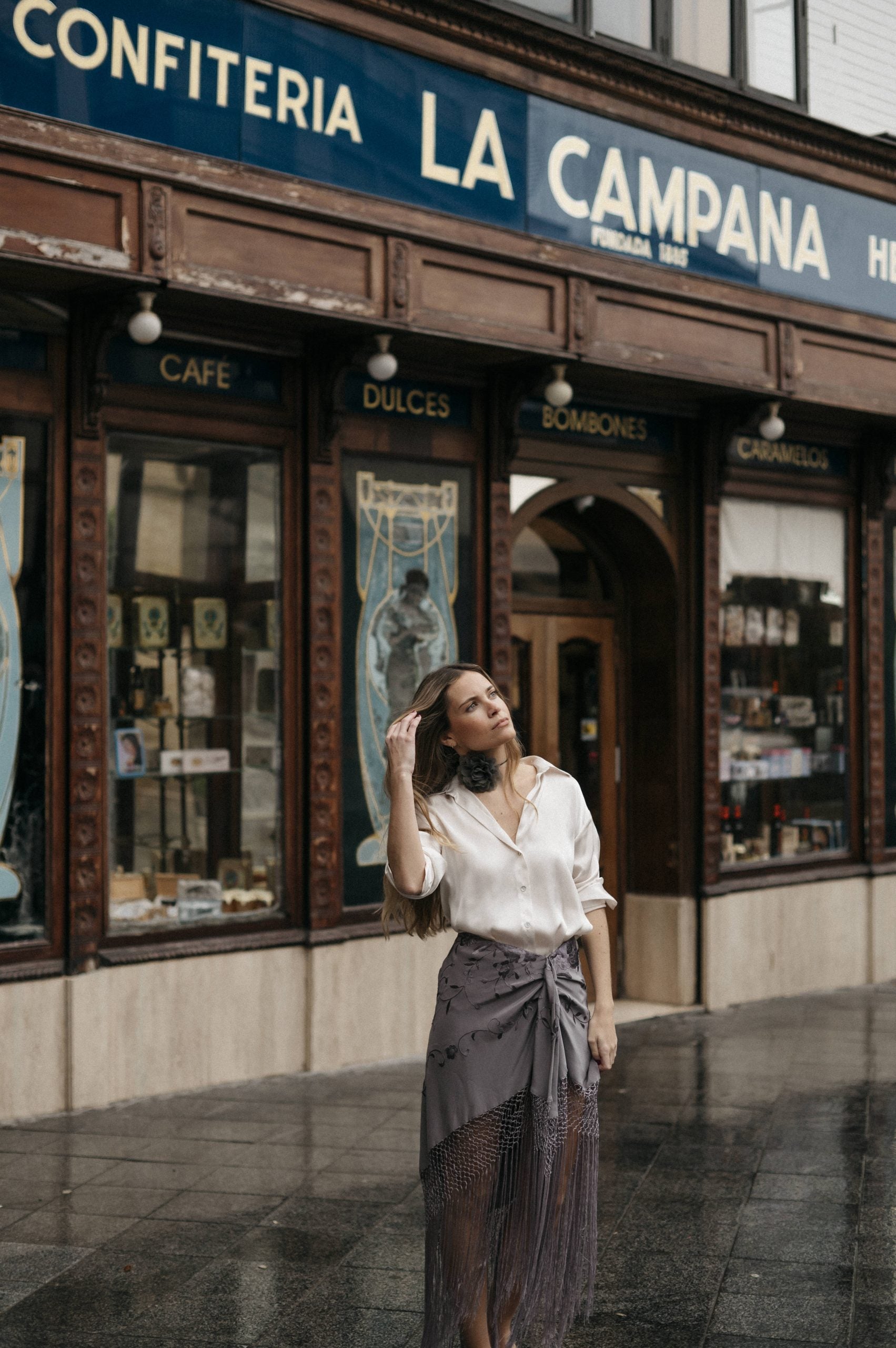 - Para que los flecos queden bien, basta con colgar la falda unos días antes de usarla y el fleco, al ser de seda, se estirará por sí solo.