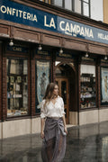 Nuestras faldas confeccionadas con mantones de Manila son un icono de la casa. En ROOM 717 reivindicamos este producto tan nuestro, el mantón de Manila, y lo llevamos a un terreno más actual y contemporáneo convirtiendo esta pieza de seda bordada y flecada a mano, en una falda pareo que puedes lucir en multitud de ocasiones, más allá de Ferias y eventos.