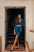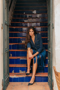 Una falda muy versátil que podrás lucir tanto de día como de noche. Su color azul intenso es la perfecta alternativa al recurrente negro y resulta igual de elegante y sofisticada. La Jupe Encens combina muy bien con camisas blancas y complementos oro.
