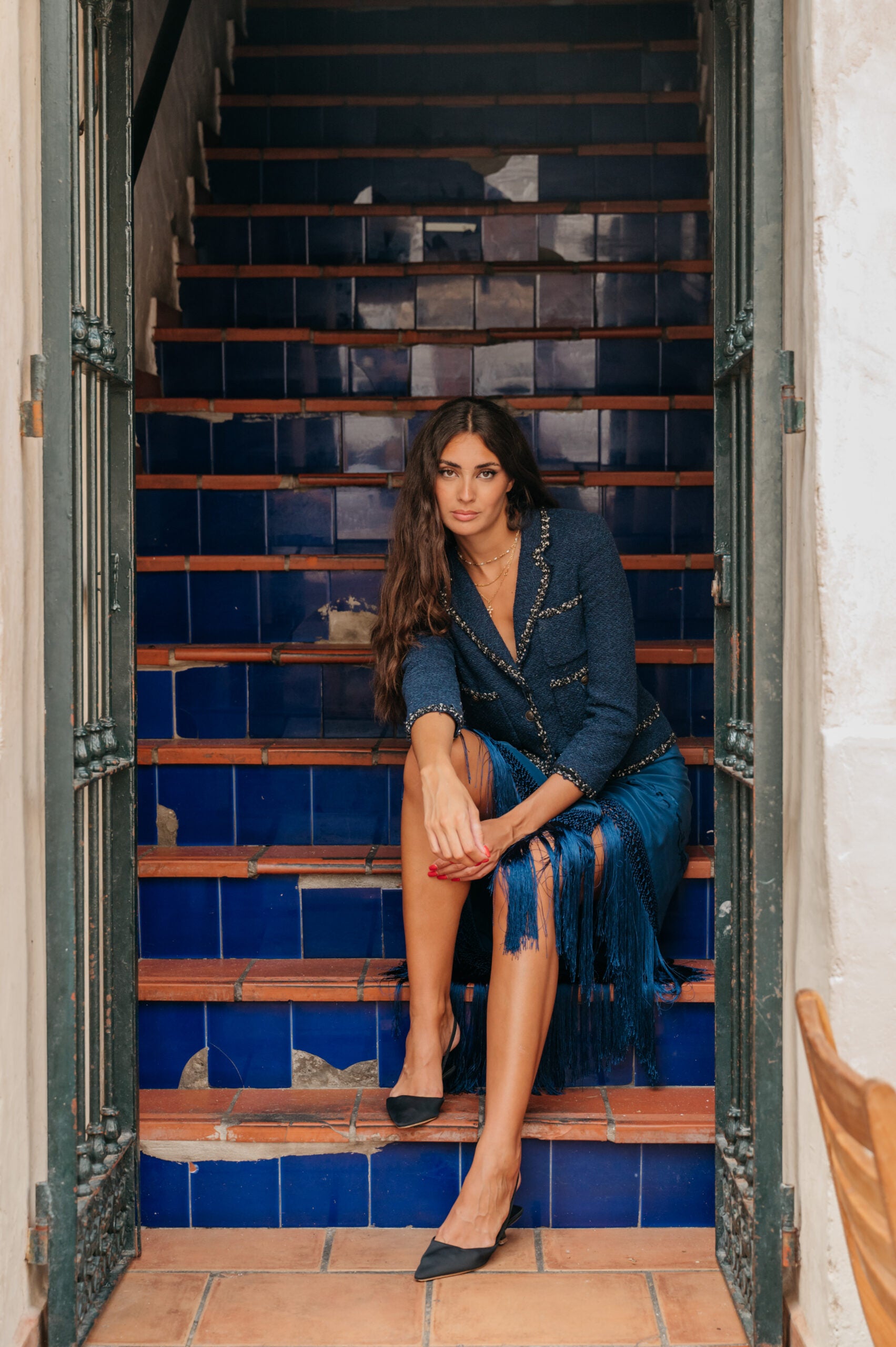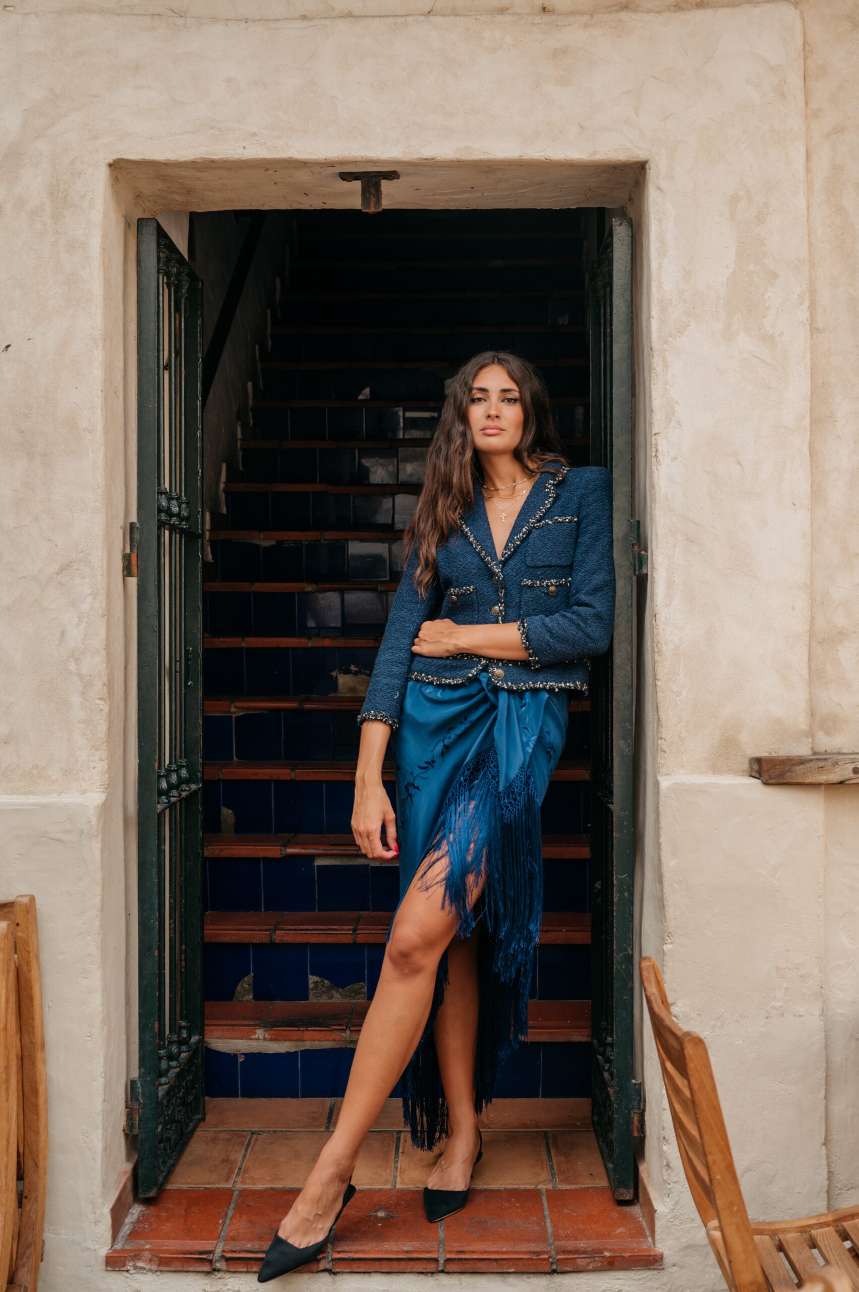 - Para que los flecos queden bien, basta con colgar la falda unos días antes de usarla y el fleco, al ser de seda, se estirará por sí solo.