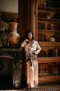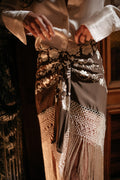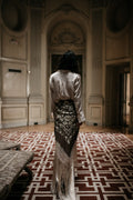 Seguramente, nuestra pieza más especial por la cantidad de bordado y la calidad de su enrejado. Una falda muy elegante para lucir en una boda o un día especial. Combina muy bien con camisa satinada en beige y accesorios dorados.